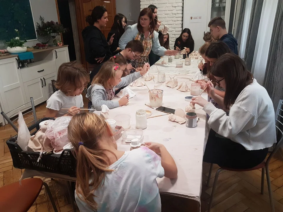 Podczas zajęć uczestnicy szkliwili i ozdabiali przygotowane na poprzednich zającach duszki, które następnie zostaną wypalone. Po tym procesie będą stanowiły piękną ozdobę domów naszych beneficjentów.