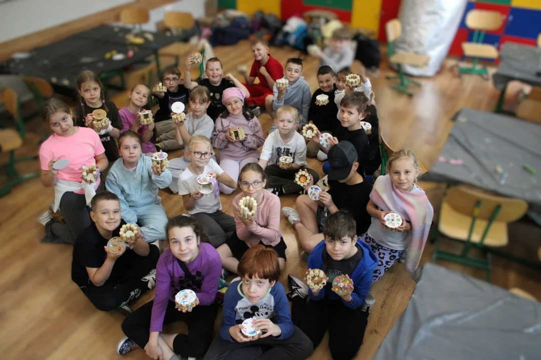 Natomiast w klasach drugich odbyły się warsztaty z wykorzystaniem korków. Uczestnicy warsztatów mieli za zadanie wykonać pudełeczka na skarby.