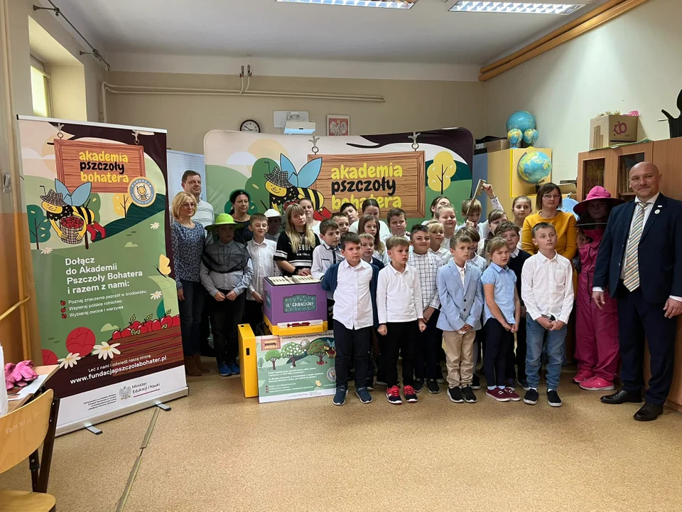 "Akademia Pszczoły Bohatera" to cykl lekcji i zadań realizowanych w szkołach podstawowych, które mają na celu edukację najmłodszych o roli pszczół w ekosystemie. W placówce we Wroczynach, jako pierwszej w województwie łódzkim, akcję zainaugurował dziś Marcin Żekało, koordynator projektu.