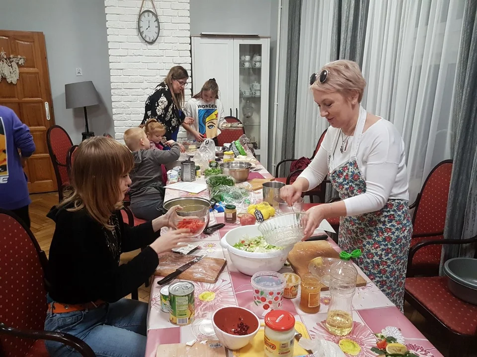 „Razem w kuchni i przy stole "- warsztaty arteterapeutyczno-kulinarne były miłą i bardzo twórczą formą spędzenia czasu wolnego oraz integracji dzieci i rodziców z pieczy zastępczej. Pozwoliły one rozwinąć zainteresowania kulinarne i arteterapeutyczne uczestników. Wspólne przygotowywanie potraw, przekąsek, sałatek, dań głównych oraz pieczenie ciast i przygotowywanie deserków miało na celu, oprócz rozwoju zdolności kulinarnych, wpłynąć także na zacieśnianie więzi rodzinnych.