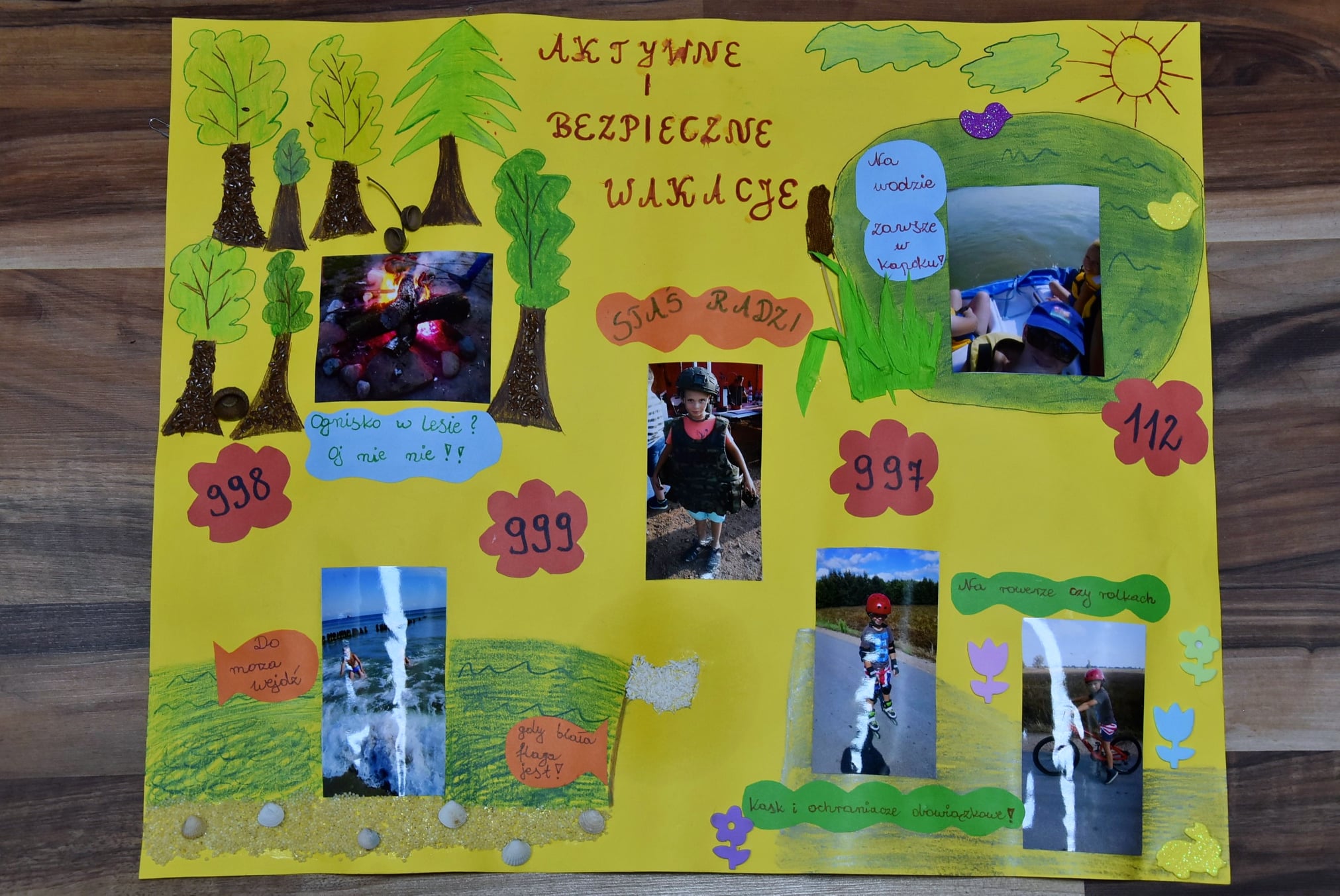 Konkurs podzielony został na dwie kategorie wiekowe: dla dzieci w wieku 6-9 lat i 10-14 lat. Prace powinny być wykonane techniką dowolną z elementami fotorelacji, format pracy nie mniejszy niż A4. Uczestnicy mieli za zadanie zobrazować jak najlepiej zasady aktywnego i bezpiecznego spędzania wakacji. Komisja jednogłośnie wybrała najciekawsze fotorelacje, które spełniały wymagania zawarte w regulaminie konkursu.