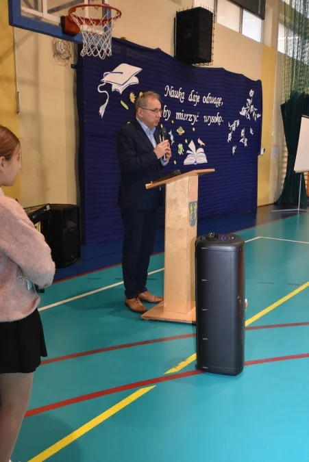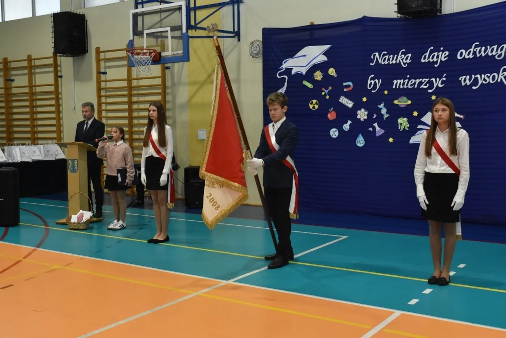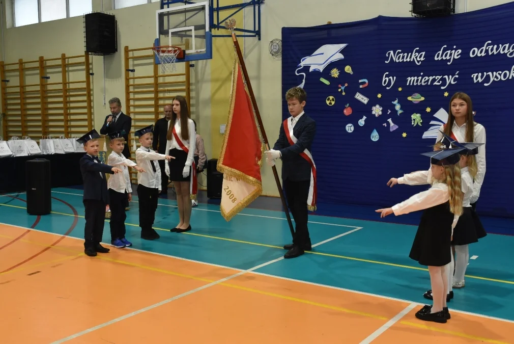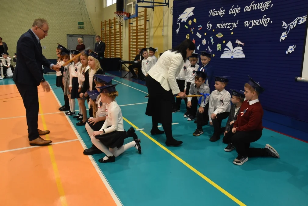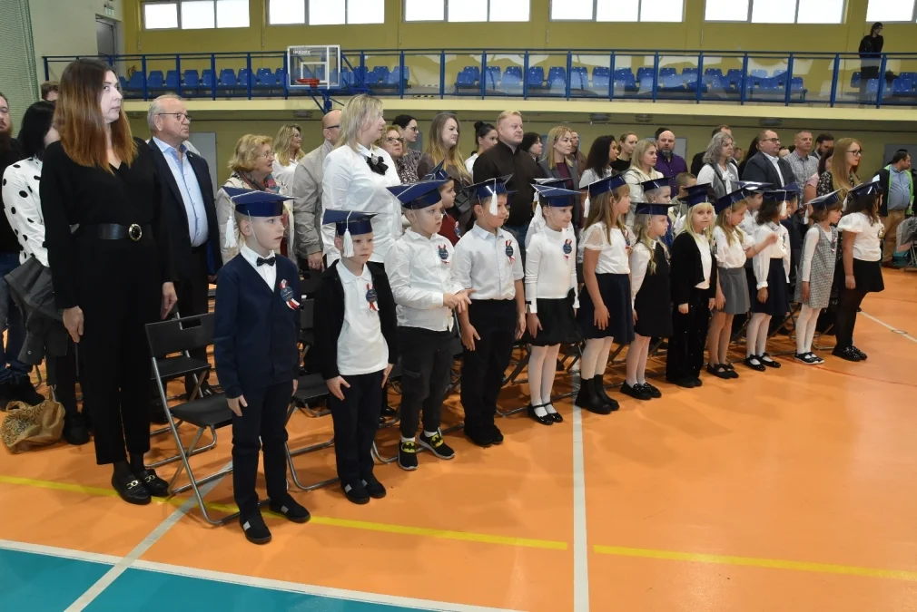 Na uroczystość przybyli zaproszeni goście: Zastępca Prezydenta Miasta Kutno -Pan Zbigniew Wdowiak, Przewodnicząca Rady Rodziców - Pani Magdalena Stasiak oraz Pracownicy Szkoły, którzy z radością uczestniczyli w tym ważnym wydarzeniu i złożyli pierwszoklasistom serdeczne gratulacje oraz życzenia sukcesów w nauce.
