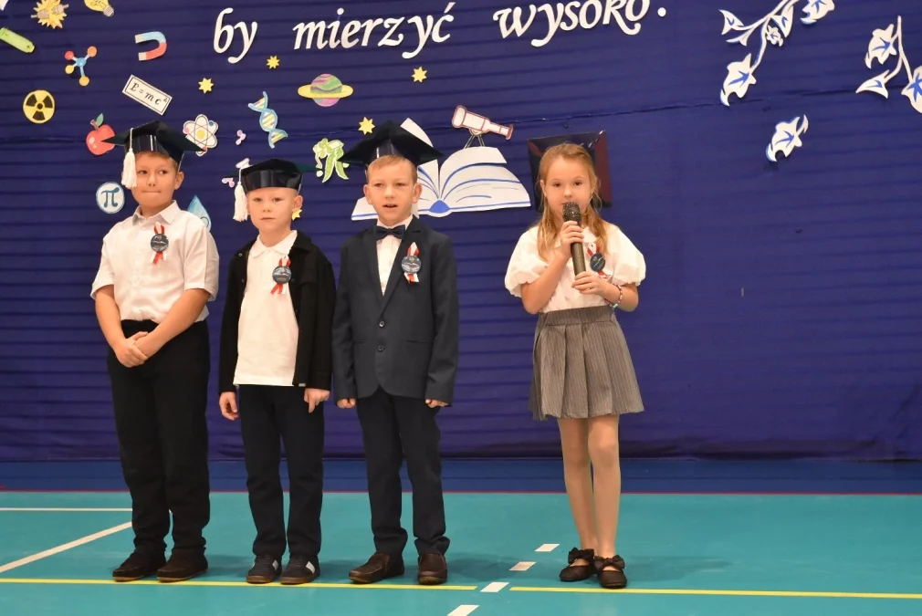 Uczniowie klasy I a, I b i I c otrzymali dyplomy, upominki ufundowane przez Prezydenta Miasta Kutno oraz rożki obfitości, które sprawiły dzieciom wiele radości i uświetniły ten wyjątkowy dzień.