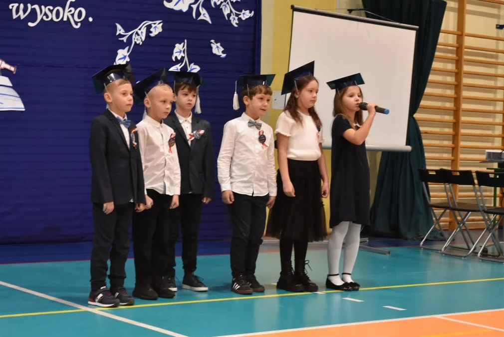 Po części artystycznej wykonaniu małych artystów nastąpiło uroczyste pasowanie na ucznia oraz złożenie Ślubowania.