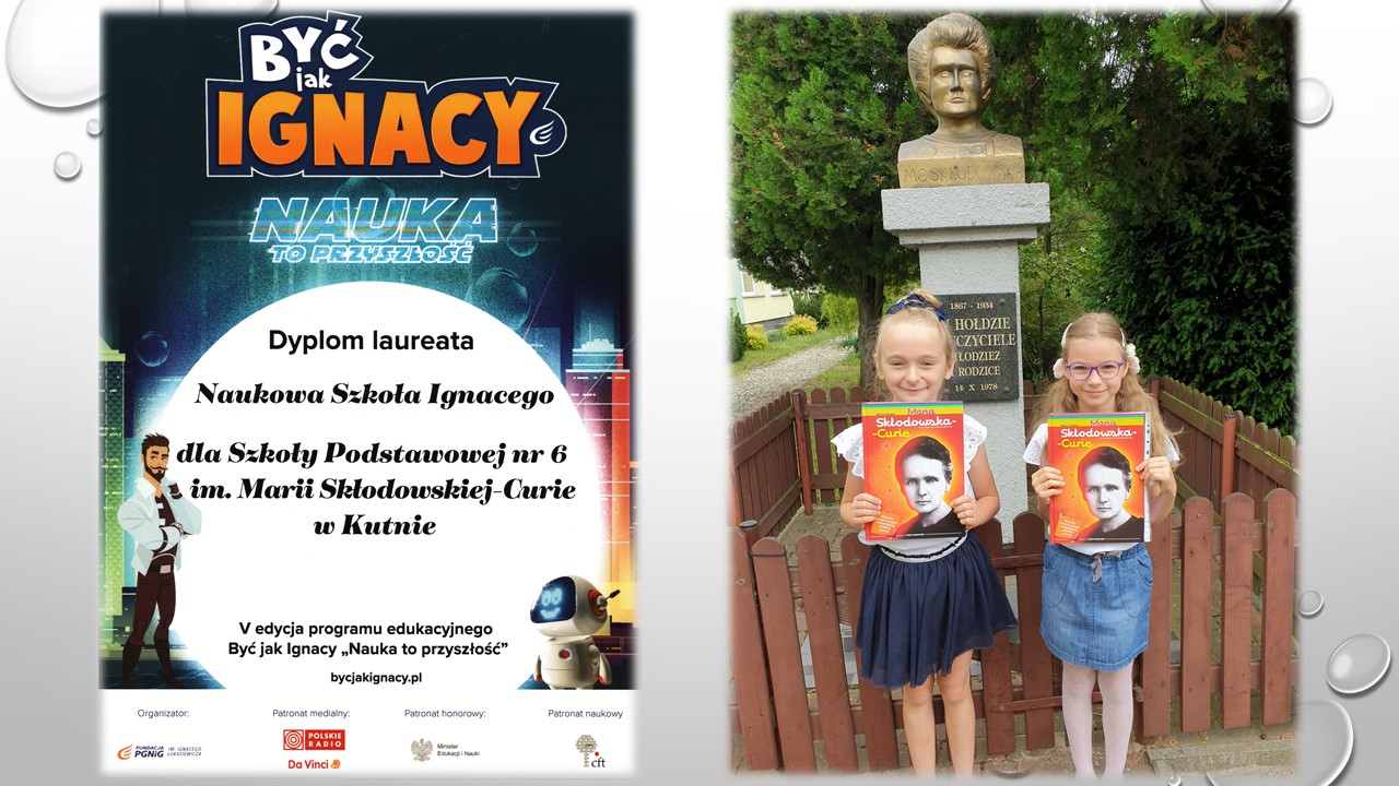 Udział w konkursie wiązał się z prowadzeniem zajęć pozalekcyjnych w oparciu o przekazane przez organizatora materiały dydaktyczne (scenariusze i prezentacje multimedialne), działaniami promującymi Koło w społeczności lokalnej, współpracą z podmiotami działającymi na rzecz nauki i oświaty oraz współpracą z rodzicami uczniów, prezentowaniem efektów działania Koła i jego wpływu na społeczność szkolną, realizowaniem punktowanych działań i zadań konkursowych – które były publikowane na Platformie „Być jak Ignacy”, oraz tworzeniem po każdym etapie projektów i wysyłaniem prac konkursowych w formie multimedialnej. Koło „Jak Skłodowska” dziękuje wszystkim osobom, które wspierały jego działalność, a szczególnie rodzicom i nauczycielom.