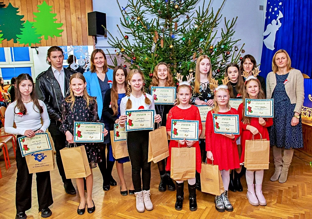- Dziękuję za pomysł, zaangażowanie i przygotowanie konkursu nauczycielkom języków obcych - pani Sylwii Czaplińskiej, pani Agnieszce Rybczyńskiej i pani Renacie Pawlak. Dziękuję także bardzo serdecznie uczniom, którzy udekorowali świątecznie salę i zadbali wraz z nauczycielami o słodki poczęstunek dla najmłodszych – mówi Magdalena Krupińska-Kotulska.