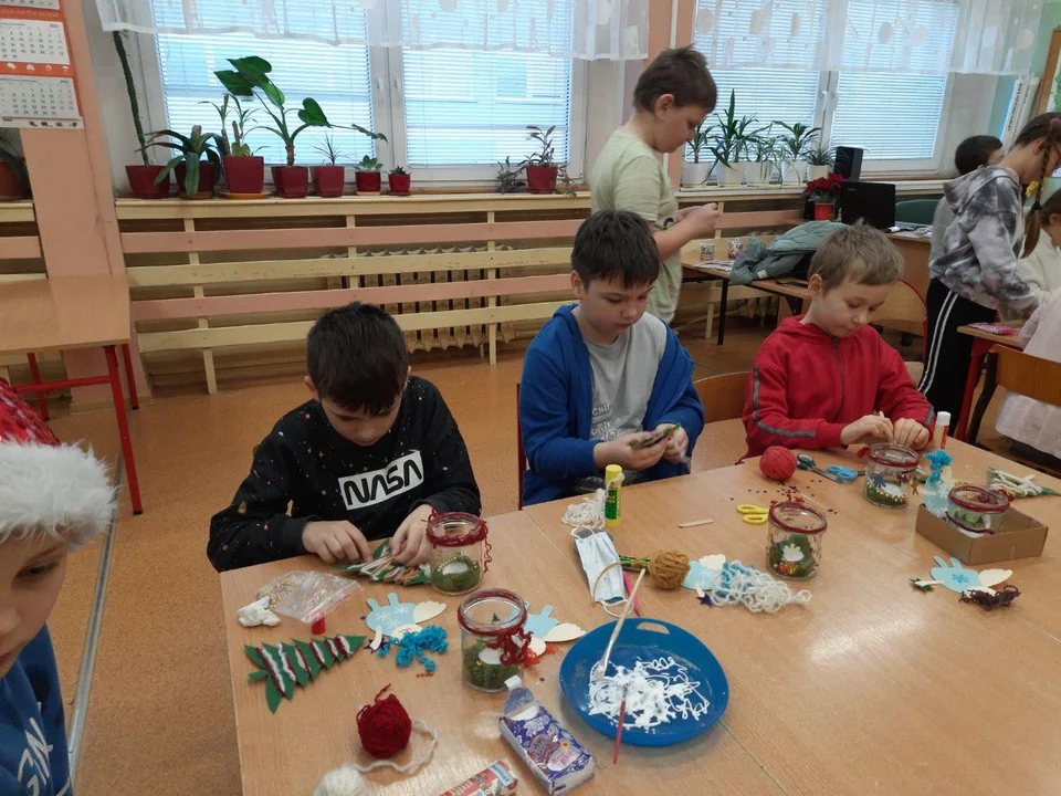 W warsztatach uczestniczyli uczniowie trzech klas: 1a, 3c oraz 3d. Dzieci miały okazję podszlifować swoje umiejętności plastyczne, tworząc wyjątkowe ozdoby, które dodadzą uroku tegorocznym choinkom.
