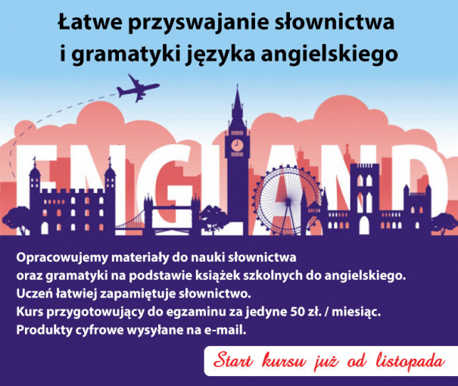 Opracowujemy materiały do nauki słownictwa oraz gramatyki na podstawie książek szkolnych do angielskiego. Uczeń łatwiej zapamiętuje słownictwo. Kurs przygotowujący do egzaminu za jedyne 50 zł. / miesiąc. Produkty cyfrowe wysyłane na mejl.