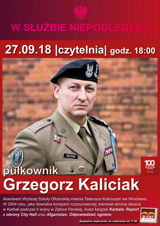 Autor "Karbali" w Kutnie. Dziś spotkanie z płk. Grzegorzem Kaliciakiem