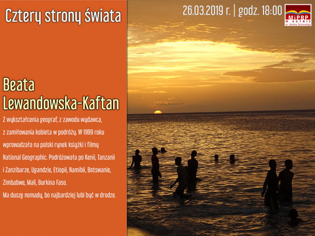 Miejska i Powiatowe Biblioteka Publiczna w Kutnie zaprasza na spotkanie z podróżniczką, które odbędzie się 26 marca o godz. 18:00 w czytelni.