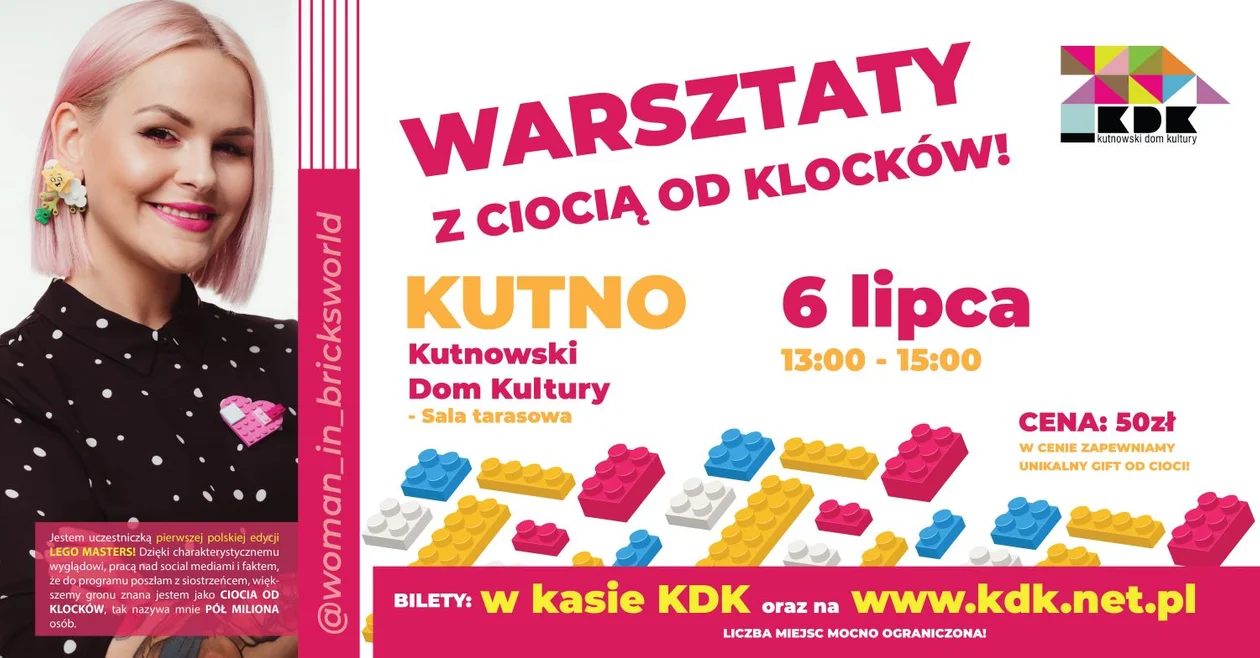 - Ponad 30 tys. klocków i wszystkie dodatkowe atrybuty przywozi ze sobą! Po warsztatach każdy uczestnik otrzyma pamiątkę od Cioci od klocków! Sugerowaną grupą odbiorców są dzieci i młodzież w wieku 6 – 13 lat, ale w zależności od zamiłowania do klocków LEGO, w warsztatach może uczestniczyć każdy! - zachęca KDK.