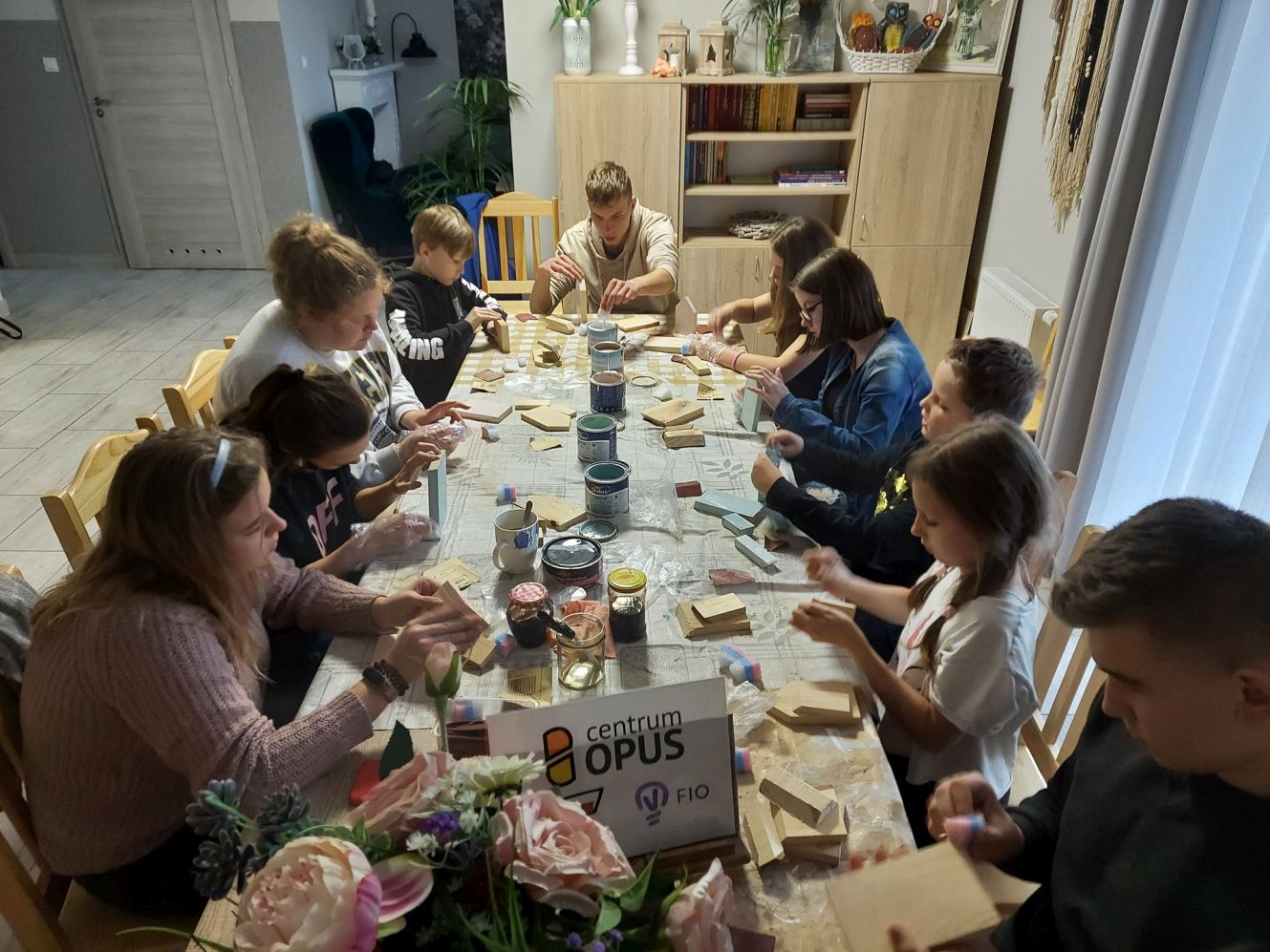 Podczas kolejnych zrealizowanych zajęć o nazwie „Drewniane tipi” uczestnicy obrabiali i malowali drewniane półki dekoracyjne. Podczas pracy zdecydowali się na wykorzystanie pastelowej kolorystyki. Wykonane półki mogą stanowić dekorację pokoju. Wewnątrz nich można umieścić drobne przedmioty czy zdjęcia bliskich osób.