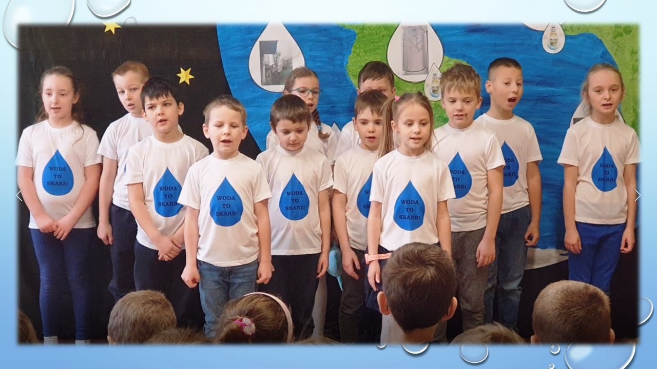 Opiekunowie i dzieciaki są dumni z zaprojektowanych koszulek, które oprócz pełnienia funkcji stroju na występ oraz t-shirtu na co dzień i każdą okazję, będą przypominały, że woda to skarb. Dziękują rodzicom za sfinansowanie tego działania. Dużo frajdy dzieciaki miały też przy konstruowaniu i testowaniu mini-oczyszczalni brudnej wody.