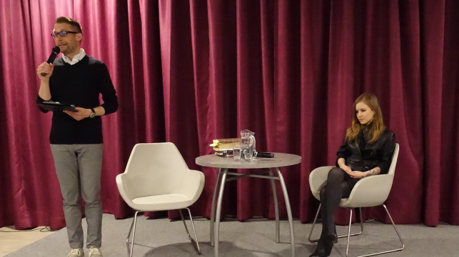 Na spotkaniu pisarka opowiedziała o swoich początkach; głównie pracy w czasopiśmie „Lampa” Pawła Dunin-Wąsowicza. Ten etap był czasem kształtowania literackiego warsztatu i poglądów na literaturę. To właśnie w tym czasie wydała „Wojnę…” i okrzyknięta została głosem nowego pokolenia pisarzy. Debiutowała jako dziewiętnastolatka, kiedy inni debiutanci byli ludźmi czterdziestoletnimi. U Masłowskiej równorzędnym bohaterem jest sam język, wiele dzieje się poprzez samo mówienie. Jak powiedziała – konstrukcje fabularne oparte na budowaniu klasycznych historii mało ją interesują. Masłowską ciekawi ten moment pisania, w którym to co powstaje absolutnie wymyka się wcześniejszym planom.