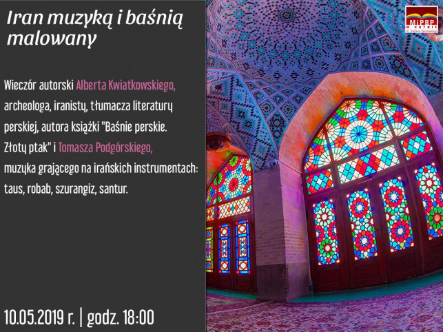 Kultura i Edukacja„Iran muzyką i baśnią malowany” to wieczór autorski Alberta Kwiatkowskiego - archeologa, iranisty, tłumacza literatury perskiej, autora książki „Baśnie perskie. Złoty ptak” i Tomasza Podgórskiego - muzyka grającego na irańskich instrumentach: taus, robab, szurangiz czy santur.