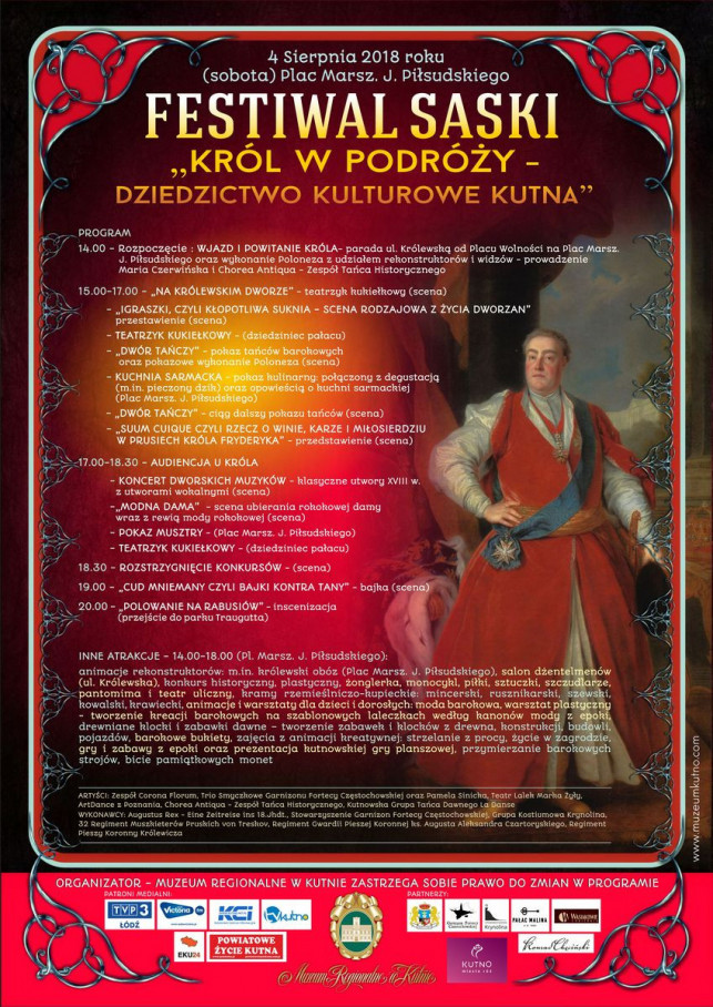 Weźmie w nim udział ok. 50 rekonstruktorów i wykonawców. To grupy amatorskie, ale także profesjonalne, które zajmują się np. tańcem barokowym i baletowym. Odbędą się także warsztaty prezentujące dawne rzemiosła, które miały zapewnić królowi w trakcie podróży pełną obsługę. Oprócz warsztatów odbędą się animacje czy konkursy historyczne i plastyczne.