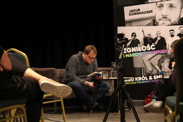 Na deser organizatorzy zaserwowali nam rozmowę z Jakubem Kornhauserem, który w Kutnie gości nie po raz pierwszy. Spotkanie z poetą, eseistą i krytykiem literackim w jednym poprowadził Przemysław Owczarek. Jakub Kornhauser na swoim koncie ma Nagrodę im. Wisławy Szymborskiej 2016 za tom „Drożdżownia”. W tym samym roku nominowany był za ten sam tom do Orfeusza – Nagrody Poetyckiej im. K.I. Gałczyńskiego. O tym, że jest człowiekiem wszechstronnym mogliśmy się przekonać podczas ciekawej rozmowy, podczas której opowiedział tym jak udaje mu się wpleść w swoją twórczość elementy geobiograficzne. Skupiliśmy się jego tomie „9 dni w ścianie”. Opowiedział, że łączy to surrealizm, rzeczywistość i empiryzm.
