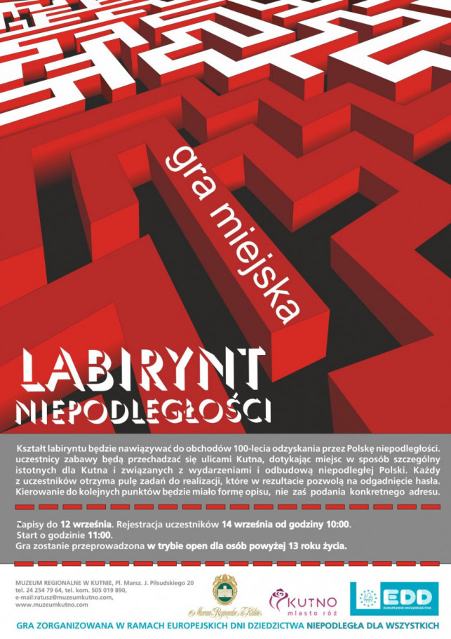 Organizatorem jest Muzeum Regionalne w Kutnie, Pl. Marsz. J. Piłsudskiego 20. Zapisy do 12 września pod adresem promocja@muzeumkutno.com lub telefonicznie 505 019 890. Rejestracja uczestników 14 września od godziny 10:00. Start o godzinie 11:00. Gra zostanie przeprowadzona w trybie open dla osób powyżej 13 roku życia.