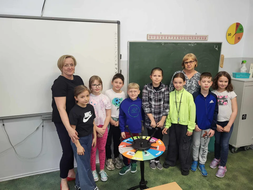 Odbył się również quiz: Przyrodniczy Zawrót Głowy. Uczniowie sprawdzali swoją wiedzę kręcąc kołem Fortuny. Dzięki tym zabawom mieli okazję powtórzyć wiedzę o środowisku oraz dobrze się pobawić.