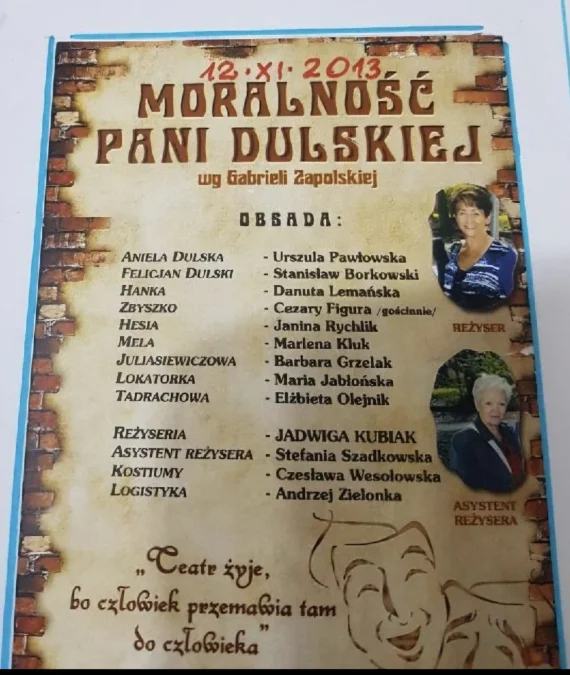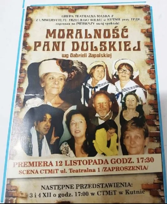 12 listopada 2013 roku grupa teatralna „Maska 2” z Uniwersytetu Trzeciego Wieku w Kutnie wystawiła po raz pierwszy sztukę „Moralność pani Dulskiej” wg Gabrieli Zapolskiej, w reżyserii Jadwigi Kubiak.