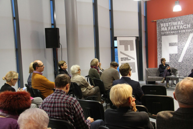 Dzisiejszy gość jest reporterką, autorką bestsellerowych książek - „Ksiądz Paradoks. Biografia Jana Twardowskiego”, „Beksińscy. Portret podwójny” oraz „1945. Wojna i pokój”. Została laureatką Nike Czytelników 2016. Grzebałkowska była już gościem literackiego cyklu „Między słowami” w Centrum Teatru Muzyki i Tańca w 2015 r., podczas którego opowiadała o „Beksińskich” i ”1945. Wojna i pokój”. Dziś natomiast na tapecie była książka poświęcona Komedzie. Zanim jednak przybyli na spotkanie kutnianie mogli się dowiedzieć o jej twórczości, pierwszym tematem była mowa nienawiści.