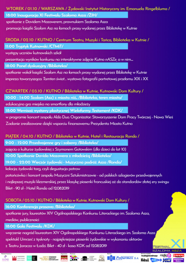 Co dwa lata, mieszkańcy Kutna mają okazję zapoznać się nie tylko z twórczością kutnowskiego pisarza, ale i z kulturą żydowską szeroko rozumianą. W tym roku nie zabraknie literatury, dyskusji i warsztatów, a także przedstawień teatralnych, koncertów i szerokiej oferty kulturalnej dla wszystkich.