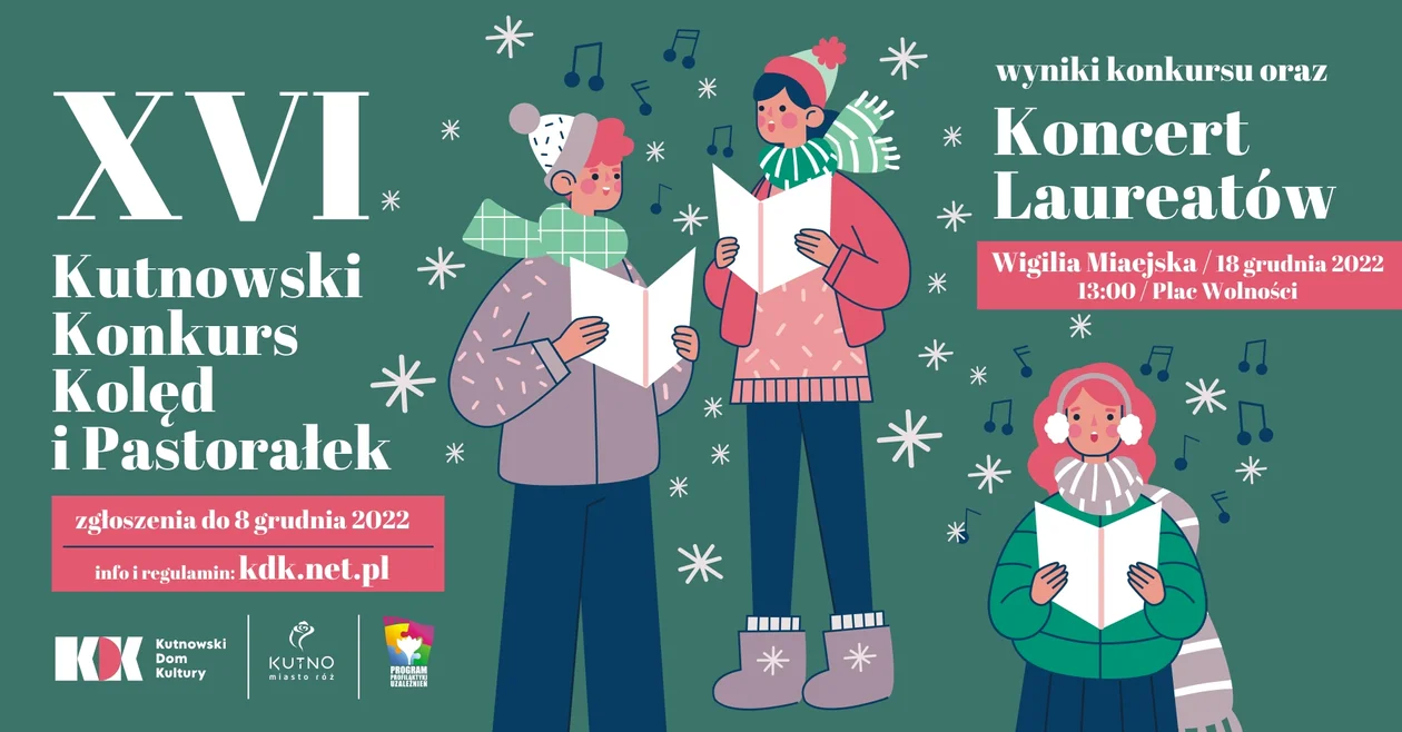 Po opublikowaniu list uczestników, do dnia 12 grudnia 2022 należy przysłać podkład do zgłoszonego utworu w formacie mp3, na adres e-mail: konkursy@kdk.net.pl. Plik mp3 należy opisać: imię i nazwisko, kategoria, tytuł utworu.