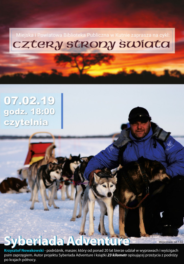 Podczas spotkania w bibliotece podróżnik opowie o swoich przygodach na dalekiej północy i spróbuje zainspirować czytelników do aktywnego stylu życia i sportu z psami.