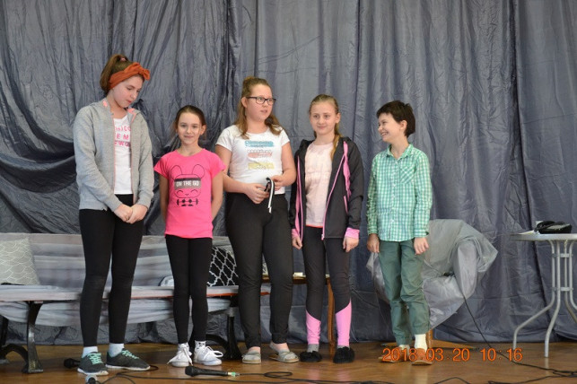 Jako drugie zostało wystawione przedstawienie „Dzień z życia państwa Pospieszalskich”, które było przygotowane przez grupę teatralną „Dziewczyny zza Kurtyny”. Spektakl zabawnie opowiada o perypetiach jakie spotykają na co dzień członków rodziny Pospieszalskich. Grupę stanowią: Nadia Czaja, Oliwia Sobierańska, Anna Tomasik, Natalia Machała oraz Roksana Banasik. Występ bardzo przypadł do gustu zgromadzonej publiczności. Obie grupy prowadzi Katarzyna Brzozowska-Zajączkowska.