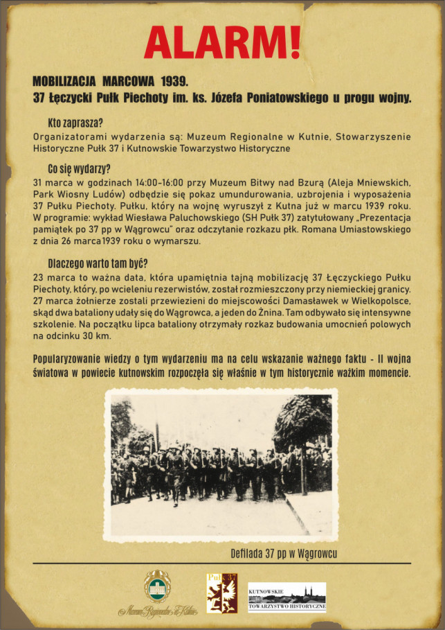 Jest ono organizowane przez Muzeum Regionalne w Kutnie, Stowarzyszenie Historyczne Pułk 37 i Kutnowskie Towarzystwo Historyczne. Zbiórka o godz. 14:00 przy Muzeum Bitwy nad Bzurą.