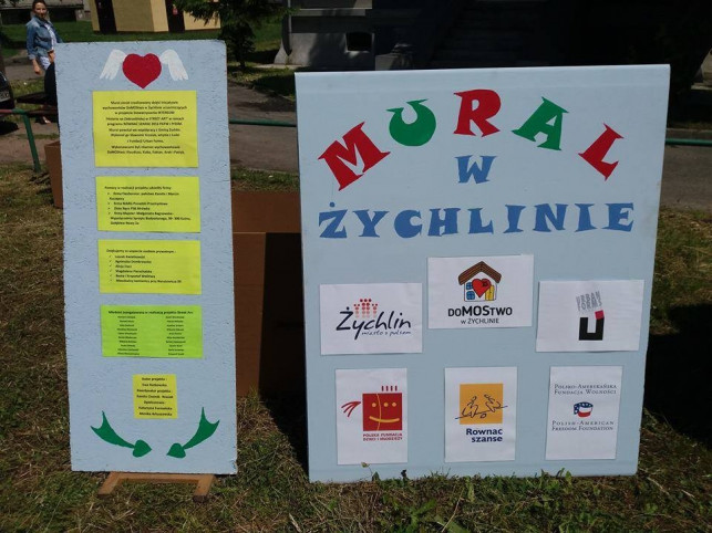 Mural powstał przy współpracy z Gminą Żychlin oraz dzięki wsparciu z funduszy projektowych Równać Szanse.