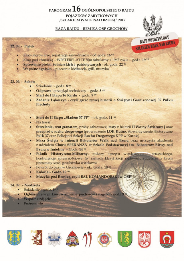 Kultura i EdukacjaW dniach 22-24 września odbędzie się XVI Ogólnopolski Rajd Pojazdów Zabytkowych "Szlakiem Walk nad Bzurą". Baza - remiza OSP Grochów.