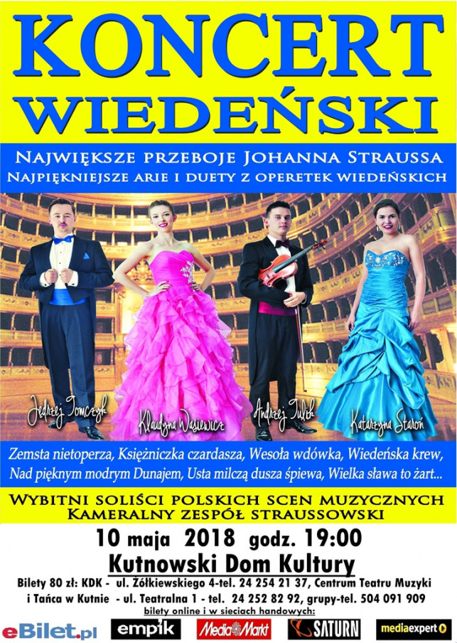 Koncert programowo nawiązywał będzie do tradycyjnych gali i noworocznych koncertów wiedeńskich. Na galę zapraszamy 10 maja. Odbędzie się ona w Kutnowskim Domu Kultury.