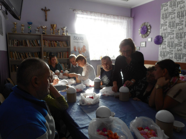 Warsztaty poprowadziły instruktorki z Kutnowskiego Domu Kultury, które w pierwszej kolejności wyjaśniły wykonanie warsztatowe wazonów z różami. Podopieczni z zainteresowaniem przypinali różyczki i owijali korpusy tworząc wazony. Z tych elementów powstały piękne wazoniki z kwiatkami, które każdy uczestnik mógł zabrać ze sobą do domu. Warsztaty plastyczne dla podopiecznych pozwalają na pobudzanie ich zdolności manualnych, wyobraźni jak i zdolności myślenia. Jednocześnie zajęcia plastyczne pozwalają na zapewnienie odpowiedniej dawki aktywności.