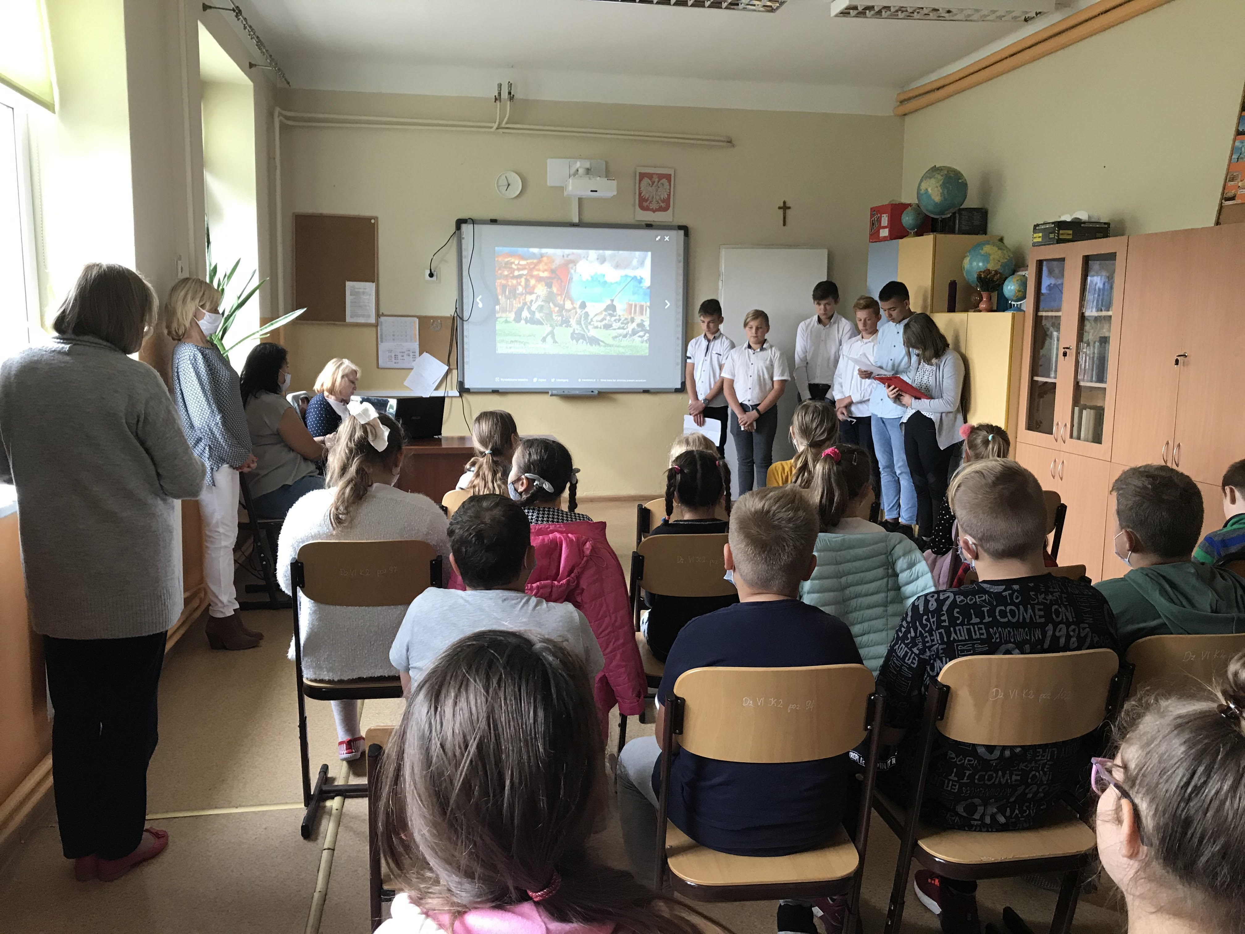W czasie uroczystości uczniowie klasy ósmej i siódmej przypomnieli odwagę, bohaterstwo i męstwo żołnierzy wałczących w Bitwie nad Bzurą w 1939 roku. Zrobili to za pomocą wzruszających wierszy i piosenek oraz pieśni, które przypomniały nam jak ważny jest szacunek dla historii minionych pokoleń i pamięć o bohaterach.