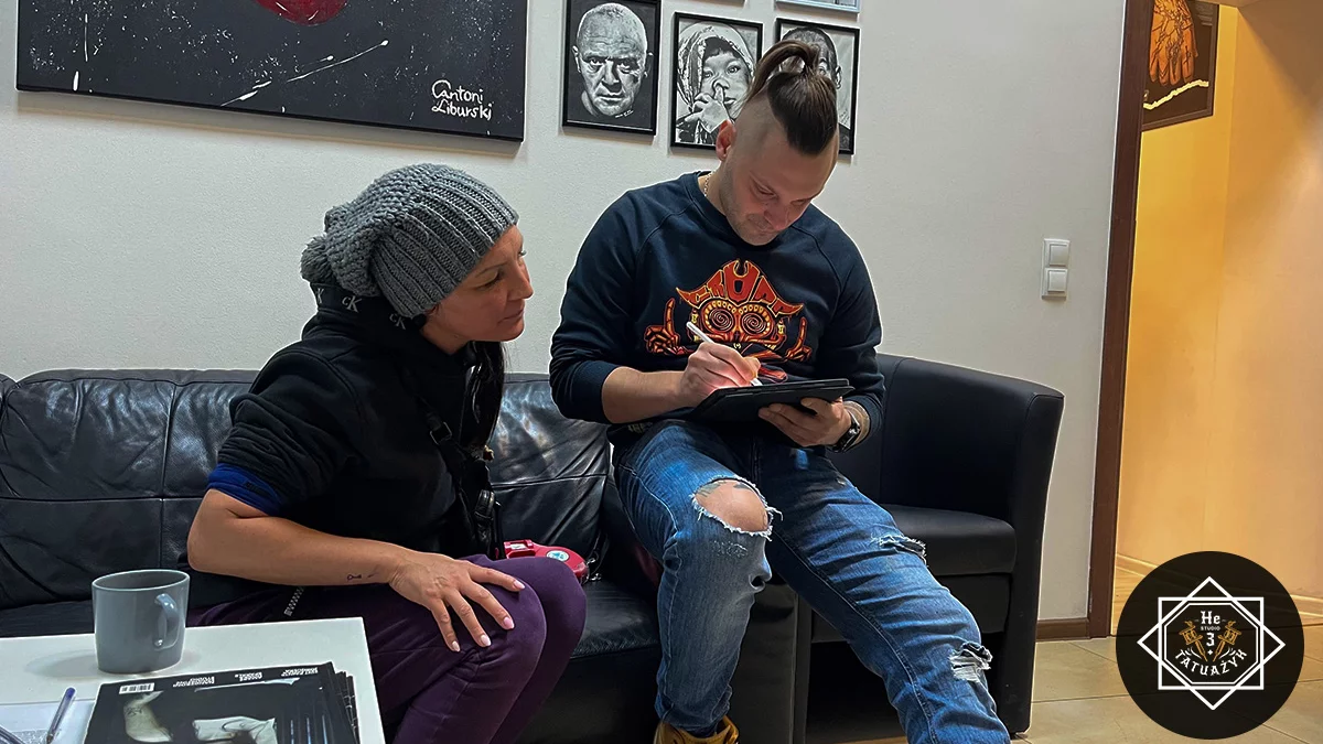 3.Budowanie relacji - W studio He3 Tatuażyk stawiamy na przyjazną atmosferę. Podczas konsultacji masz szansę poznać swojego tatuatora, co zwiększa komfort podczas sesji.