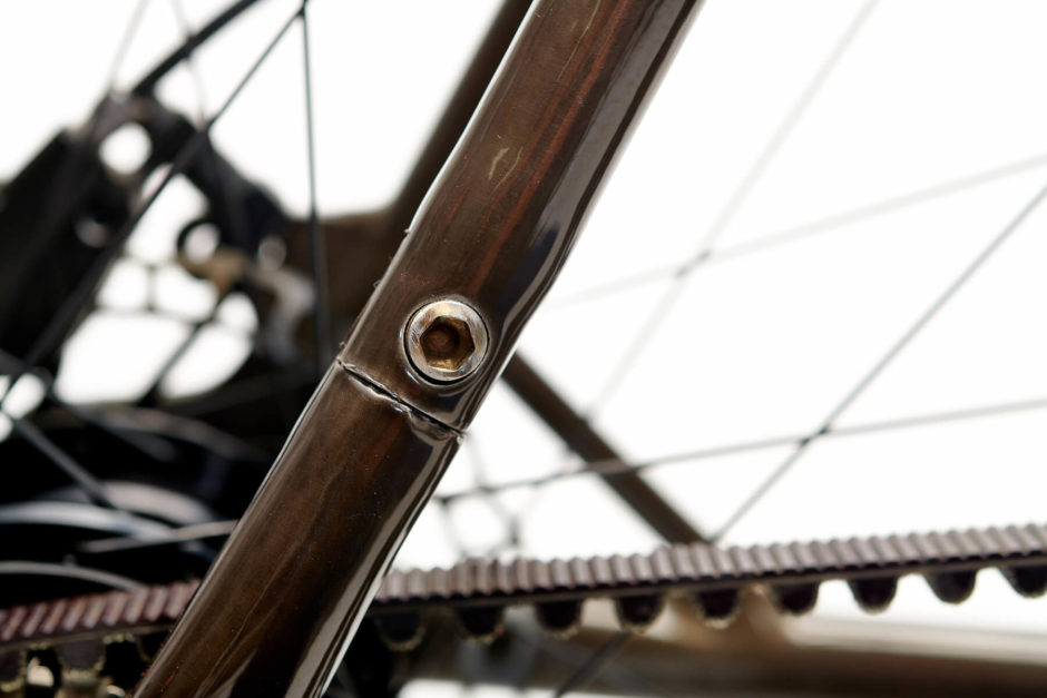- utrudniony serwis – pasek jest nierozpinany, dlatego wymaga rozpięcia ramy, co może być kłopotliwe w przypadku zmiany dętki i innych prac serwisowych – trzeba wozić ze sobą specjalny klucz