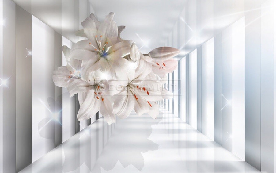 Fototapety 3d trójwymiarowe mogą wykorzystywać motyw kwiatowy, co widać wyraźnie na załączonym obrazku. Tego typu dekoracje ścienne nadają się do aranżacji w nowoczesnym stylu. Dopełnią też wnętrza z nutą glamour. Imponujące lilie zostały wykonane z troską o każdy szczegół. Z kolei przestrzeń, która je otacza, onieśmiela idealną bielą i blaskiem. Choć fototapeta jest utrzymana w jasnej tonacji, dużo się na niej dzieje. Ciekawa propozycja dla osób ceniących wyraziste dekoracje. Możesz ją zamówić w formie fototapety flizelinowej, która jest wykonana na bazie technologii lateksowej. W przypadku takiego produktu wykorzystuje się podkład celulozowo-flizelinowy, którego gramatura wynosi 155 g/m2. Nadruk charakteryzuje się wysoką jakością i doskonałym nasyceniem kolorów. Dekoracja dobrze sobie radzi w warunkach domowych, gdzie jest narażona na zarysowania. Może być czyszczona przy użyciu suchej ściereczki.