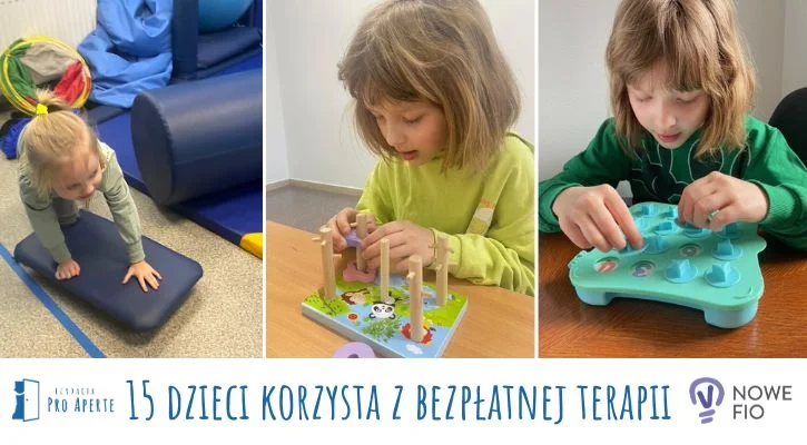 Fundacja „Pro Aperte” jest w trakcie realizacji projektu "Dzieci-Rodzice-Szkoła. Mobilne działania terapeutyczno-edukacyjne-interwencyjne" Narodowego Funduszu Inicjatyw Obywatelskich Centrum Rozwoju Inicjatyw Obywatelskich, realizowanego w ramach Programu Fundusz Inicjatyw Obywatelskich NOWE FIO na lata 2021-2023. Od stycznia kolejna tura dzieci rozpoczęła bezpłatną terapię indywidualną. 15 dzieci korzysta z 20 godzin terapii każde. Są to zajęcia z psychologiem, pedagogiem, terapeutą SI, logopedą.