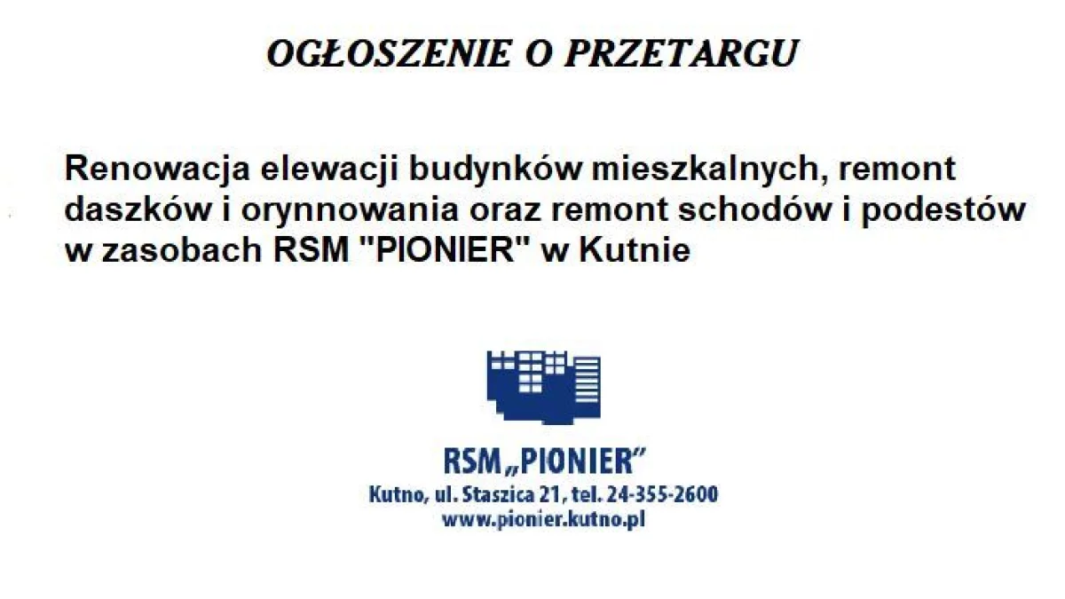 Szczegóły warunków przetargu zawarte są w Specyfikacji Istotnych Warunków Zamówienia, którą można uzyskać za kwotę 61,50 zł brutto w biurze Spółdzielni przy ul. Staszica 21 w Kutnie pok. 24 (tel. 24 355 26 19).
