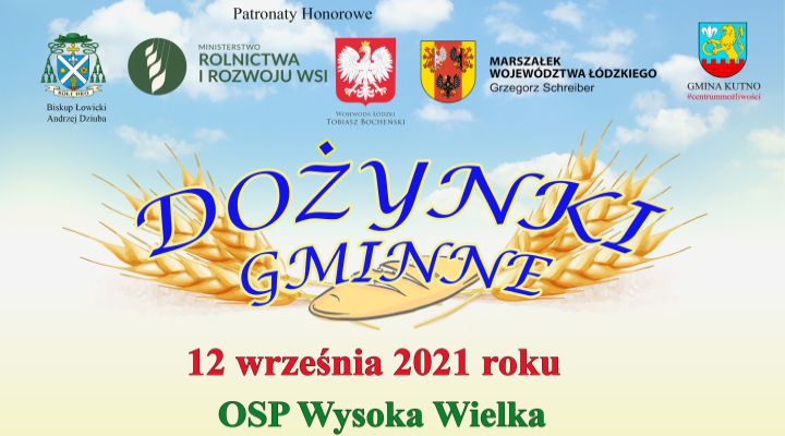 Wójt Gminy Kutno Justyna Jasińska zaprasza na Dożynki gminne, które odbędą się 12 września 2021 roku w Wysokiej Wielkiej. Po Mszy Świętej Dożynkowej i Ceremonii Dożynkowej na uczestników czekają występy artystyczne oraz szereg atrakcji min. strefa zabaw dla dzieci, poczęstunek, fotobudka. Ne terenie wydarzenie będzie można również odwiedzić stoiska informacyjne, Mobilny Punkt Szczepień oraz Punkt Narodowego Spisu Powszechnego.