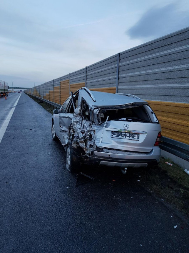 O sprawie informuje Komenda Powiatowa Policji w Łęczycy. Policjanci pracujący na miejscu wstępnie ustalili, że citroen kierowany przez 48–letniego mieszkańca Łodzi, jadąc w kierunku Warszawy zderzył się z osobowym mercedesem, który stał na pasie awaryjnym, po tym jak uległ awarii. W unieruchomionym aucie w chwili zderzenia przebywało małżeństwo z woj. zachodniopomorskiego, oczekując na przyjazd holownika. Największych obrażeń doznał 58–letni pasażer dostawczego citroena, który został przetransportowany śmigłowcem LPR do jednego z łódzkich szpitali. Na miejscu pracowały służby ratunkowe. Droga na czas lądowania śmigłowca była zablokowana. Kierowcy pojazdów trzeźwi.