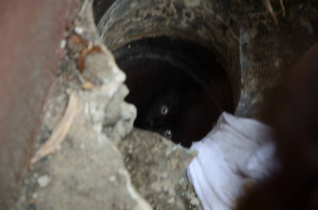 Sprawa dziś znalazła swój finał. Zaniepokojony losem kociaka komendant osobiście przybył na pomoc. W godzinach porannych udał się na miejsce. Próbując go wybawić ze szczeliny, podsunął mu kawałki mięsa, dzięki czemu udało się go stamtąd wyciągnąć. Po wszystkim postanowiono oddać go na obserwację do weterynarza. Istnieje szansa na przygarnięcie kotka przez małżeństwo, które pierwsze pospieszyło mu na ratunek i utrzymało go przy życiu.