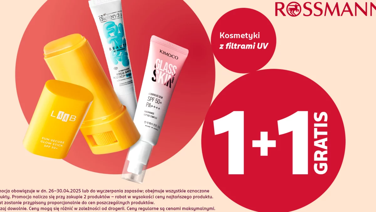 Promocją 1+1 na kosmetyki z filtrem UV objętych są setki produktów. Wybierz najlepiej dopasowane do twoich potrzeb w swojej ulubionej drogerii lub pod tym linkiem. Oferta obowiązuje do 30 kwietnia lub do wyczerpania zapasów.