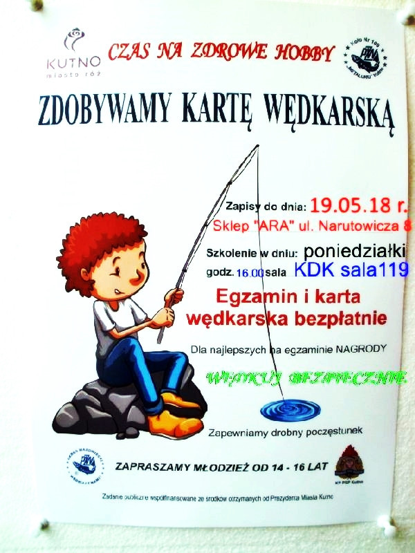 - Promujemy zastąpienie dni z telewizorem i różnymi konsolami do gier czy też próbowania złych używek na rzecz kontaktu z przyrodą i ochrony naturalnego środowiska oraz działań proekologicznych. Przybliżenie znaczenia zdrowego wypoczynku, kontaktu z przyrodą i rywalizacji sportowej dla prawidłowego rozwoju jednostki osobowej. Propagowanie sportu wędkarskiego jako alternatywnej formy aktywnego wypoczynku. Dodatkowo przekażemy jak bezpiecznie korzystać z wypraw nad wodę.Rozwijanie umiejętności właściwego zachowania się w sytuacjach zagrożenia i ich umiejętnego omijania - współdziałanie z KP PSP w Kutnie - informuje Zbigniew Gralewski, prezes koła. - W planach mamy przeprowadzenie w formie nieodpłatnej 200 egzaminów na kartę wędkarską, Prezydent sfinansuje m.in. materiały edukacyjne, koszty karty wędkarskiej oraz poczęstunek i nagrody dla najlepiej zdających. Szkolenia będą się odbywały w szkołach oraz w KDK -dodaje.