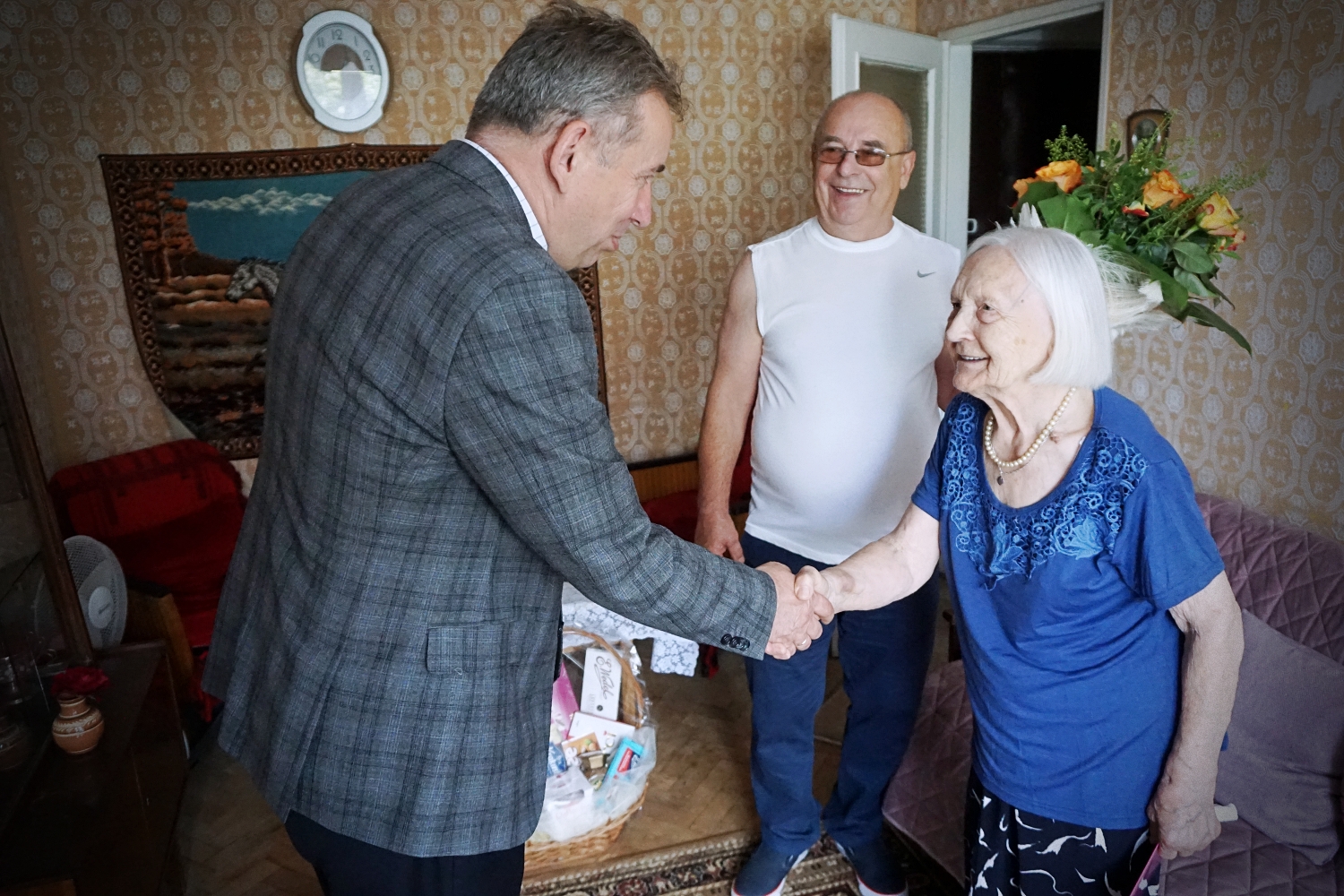 W tak szczególny dzień Panią Janinę odwiedził zastępca prezydenta Kutna Zbigniew Wdowiak, który na ręce jubilatki złożył list gratulacyjny, bukiet kwiatów i kosz upominków. - Serdecznie gratuluję. Bardzo nam miło, że mogliśmy w Pani święcie uczestniczyć – zaznaczył.