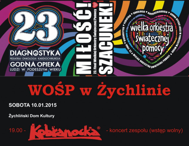 Tegoroczny 23. finał Wielkiej Orkiestry Świątecznej Pomocy w Żychlinie rozpocznie się w niedzielny poranek 11 stycznia. Gwiazdą wieczoru będzie zespół Kobranocka.