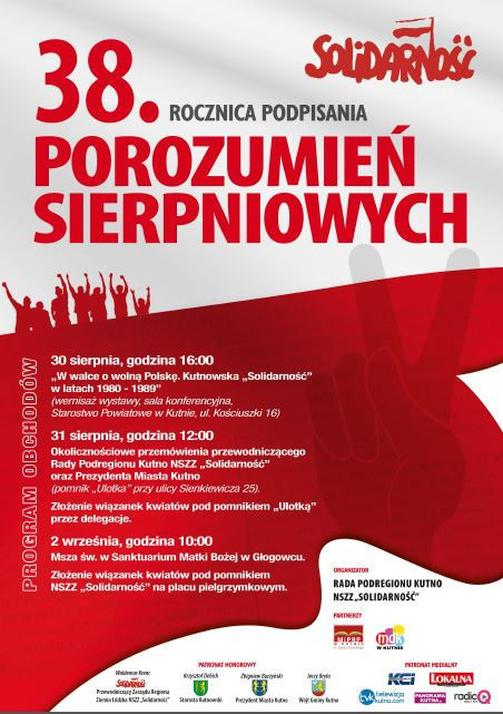 30 sierpnia o godz. 16:00 odbędzie się wernisaż wystawy w sali konferencyjnej Starostwa Powiatowego w Kutnie pod nazwą "W walce o wolną Polskę. Kutnowska "Solidarność" w latach 1980-1989".