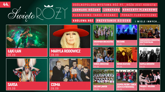 12:00 – 18:00 - Rzeźba i róże / warsztaty rzeźbiarstwa – Muzeum Regionalne w Kutnie, Mistrzowski pokaz florystyczny, BAW SIĘ RAZEM Z NAMI – występy teatralne, taneczne i wokalne