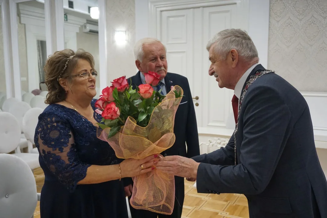 Jubileusz 50-lecia pożycia małżeńskiego obchodzili w minioną sobotę Państwo Ewa i Józef Dominowscy. Prezydent Zbigniew Burzyński pogratulował im wspólnie spędzonych lat i podziękował za trud pracy zawodowej. Na kolejne lata wspólnej drogi prezydent życzył Jubilatom dużo zdrowia, wiele radości i optymizmu w otoczeniu rodziny oraz wszelkiej pomyślności.